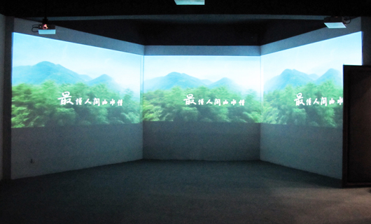 安吉天荒坪影视基地展示厅 ,位于安吉县银坑村内,欣晟多媒体团队负责策划、设计、系统开发制作了《明星连连看》、《看电影配音》和《180°天荒坪影视之旅》。其中,《180°天荒坪影视之旅》为该馆亮点展项。该展项由180°环形屏向观众展示一段有关安吉天荒坪影视之旅的影片,影片由欣晟多媒体团队全面完成制作,绚丽的特效,配以震撼音效,给观众留下深刻印象。